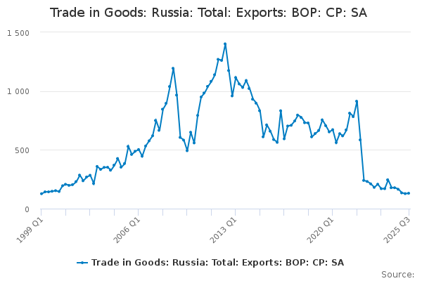 Download this time seriesTrade in Goods: Russia: Total: Exports: BOP: CP: SA