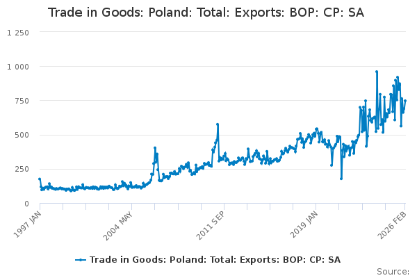 Download this time seriesTrade in Goods: Poland: Total: Exports: BOP: CP: SA
