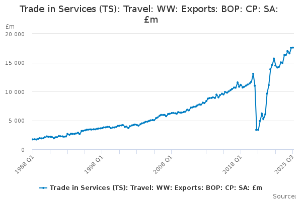 Download this time seriesTrade in Services (TS): Travel: WW: Exports: BOP: CP: SA: £m