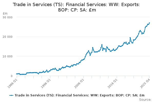 Download this time seriesTrade in Services (TS): Financial Services: WW: Exports: BOP: CP: SA: £m