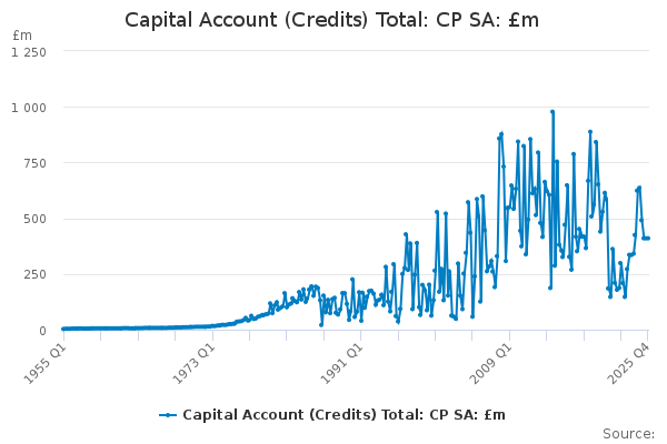 Download this time seriesCapital Account (Credits) Total: CP SA: £m