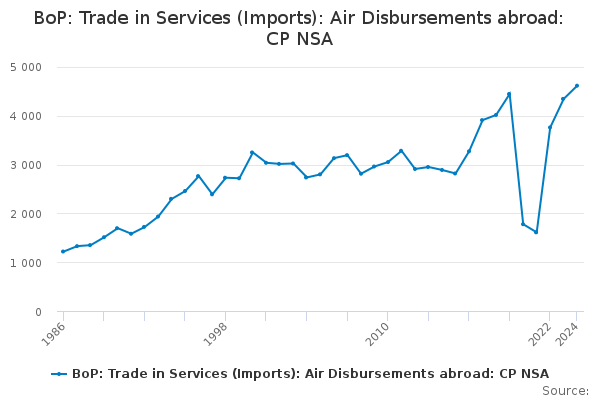 Download this time seriesBoP: Trade in Services (Imports): Air Disbursements abroad: CP NSA