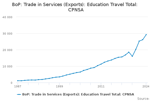 Download this time seriesBoP: Trade in Services (Exports): Education Travel Total: CPNSA