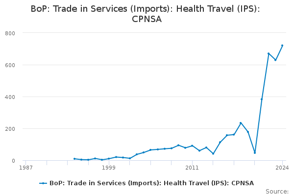 Download this time seriesBoP: Trade in Services (Imports): Health Travel (IPS): CPNSA