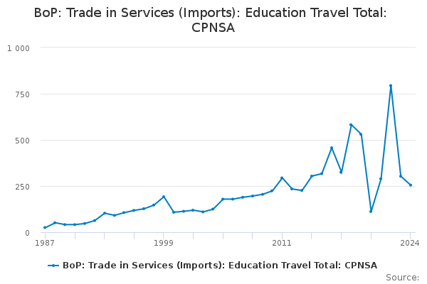 Download this time seriesBoP: Trade in Services (Imports): Education Travel Total: CPNSA
