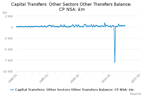 Download this time seriesCapital Transfers: Other Sectors Other Transfers Balance: CP NSA: £m