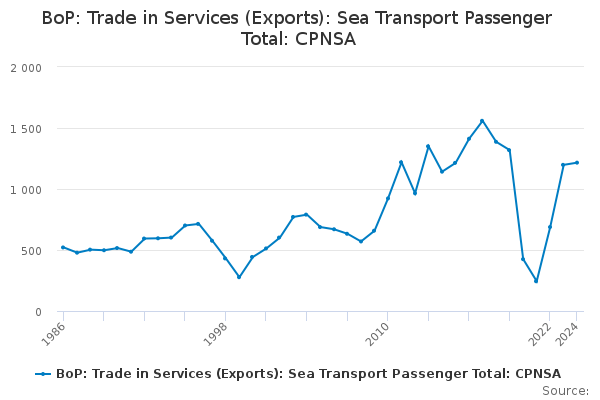 Download this time seriesBoP: Trade in Services (Exports): Sea Transport Passenger Total: CPNSA