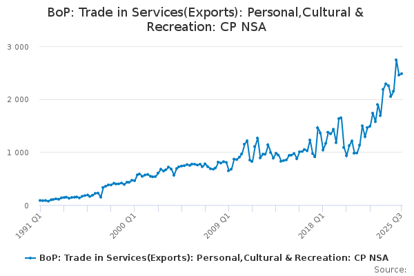Download this time seriesBoP: Trade in Services(Exports): Personal,Cultural & Recreation: CP NSA