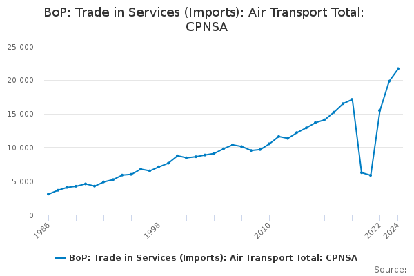 Download this time seriesBoP: Trade in Services (Imports): Air Transport Total: CPNSA