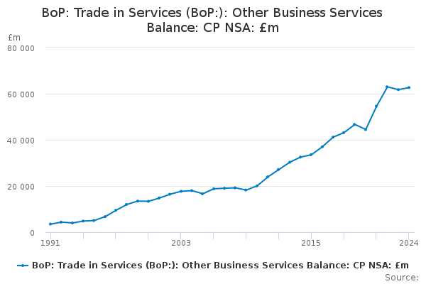Download this time seriesBoP: Trade in Services (BoP:): Other Business Services Balance: CP NSA: £m