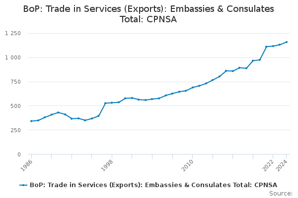 Download this time seriesBoP: Trade in Services (Exports): Embassies & Consulates Total: CPNSA