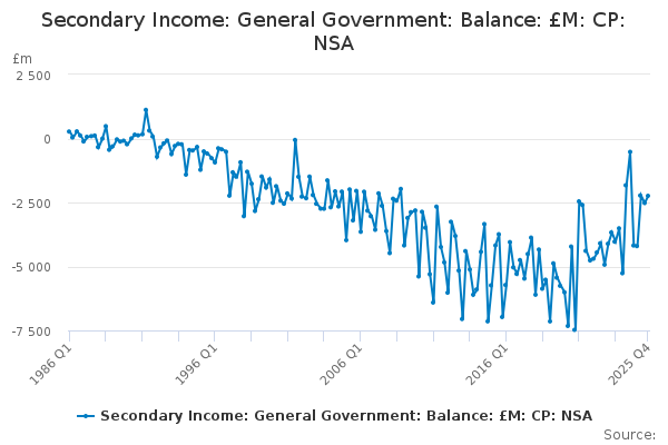 Download this time seriesSecondary Income: General Government: Balance: £M: CP: NSA