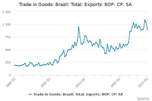 Download this time seriesTrade in Goods: Brazil: Total: Exports: BOP: CP: SA