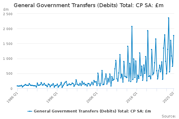 Download this time seriesGeneral Government Transfers (Debits) Total: CP SA: £m