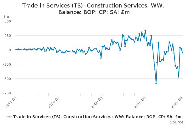 Download this time seriesTrade in Services (TS): Construction Services: WW: Balance: BOP: CP: SA: £m