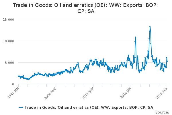 Download this time seriesTrade in Goods: Oil and erratics (OE): WW: Exports: BOP: CP: SA