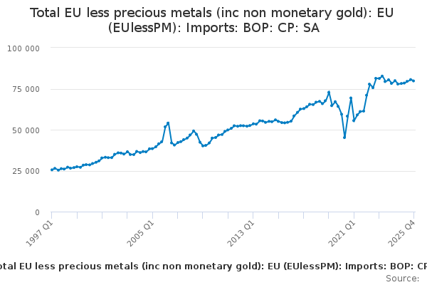 Download this time seriesTotal EU less precious metals (inc non monetary gold): EU (EUlessPM): Imports: BOP: CP: SA