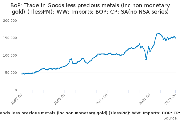 Download this time seriesBoP: Trade in Goods less precious metals (inc non monetary gold) (TlessPM): WW: Imports: BOP: CP: SA(no NSA series)
