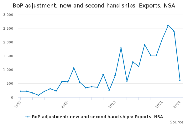 Download this time seriesBoP adjustment: new and second hand ships: Exports: NSA
