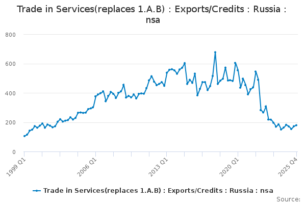 Download this time seriesTrade in Services(replaces 1.A.B) : Exports/Credits : Russia : nsa