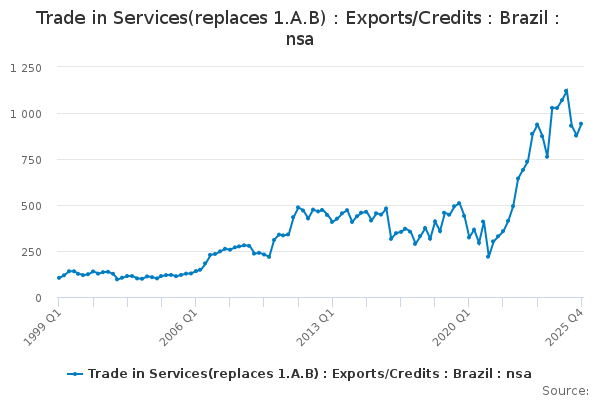 Download this time seriesTrade in Services(replaces 1.A.B) : Exports/Credits : Brazil : nsa