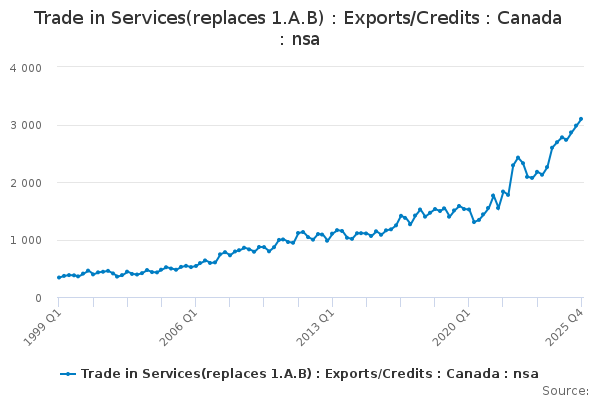 Download this time seriesTrade in Services(replaces 1.A.B) : Exports/Credits : Canada : nsa