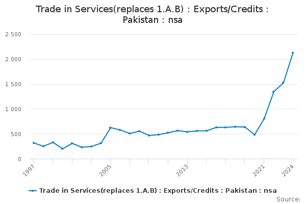 Download this time seriesTrade in Services(replaces 1.A.B) : Exports/Credits : Pakistan : nsa