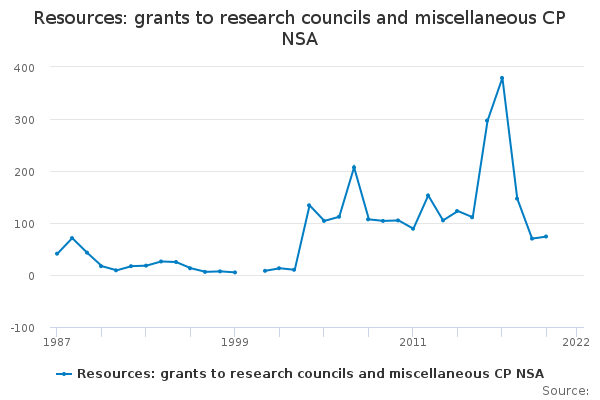 Download this time seriesResources: grants to research councils and miscellaneous CP NSA