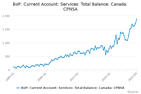 Download this time seriesBoP: Current Account: Services: Total Balance: Canada: CPNSA