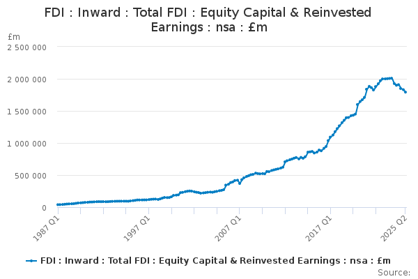 Download this time seriesFDI : Inward : Total FDI : Equity Capital & Reinvested Earnings : nsa : £m