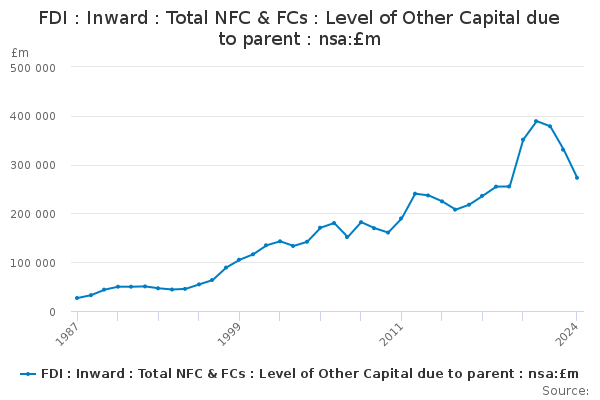 Download this time seriesFDI : Inward : Total NFC & FCs : Level of Other Capital due to parent : nsa:£m