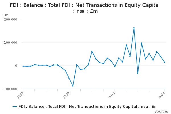 Download this time seriesFDI : Balance : Total FDI : Net Transactions in Equity Capital : nsa : £m
