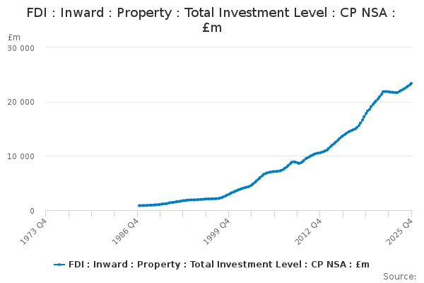 Download this time seriesFDI : Inward : Property : Total Investment Level : CP NSA : £m