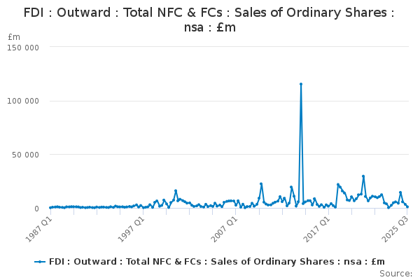 Download this time seriesFDI : Outward : Total NFC & FCs : Sales of Ordinary Shares : nsa : £m