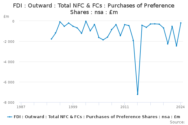 Download this time seriesFDI : Outward : Total NFC & FCs : Purchases of Preference Shares : nsa : £m