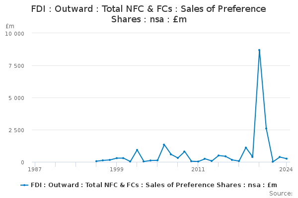 Download this time seriesFDI : Outward : Total NFC & FCs : Sales of Preference Shares : nsa : £m