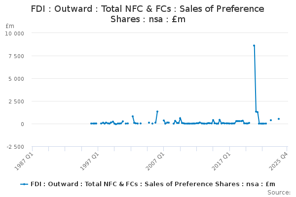 Download this time seriesFDI : Outward : Total NFC & FCs : Sales of Preference Shares : nsa : £m
