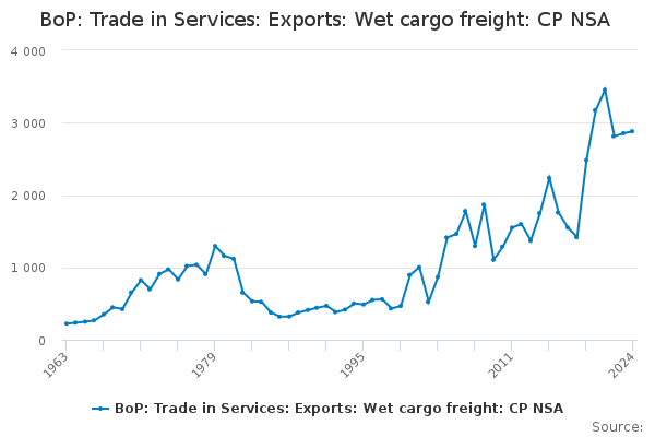 Download this time seriesBoP: Trade in Services: Exports: Wet cargo freight: CP NSA