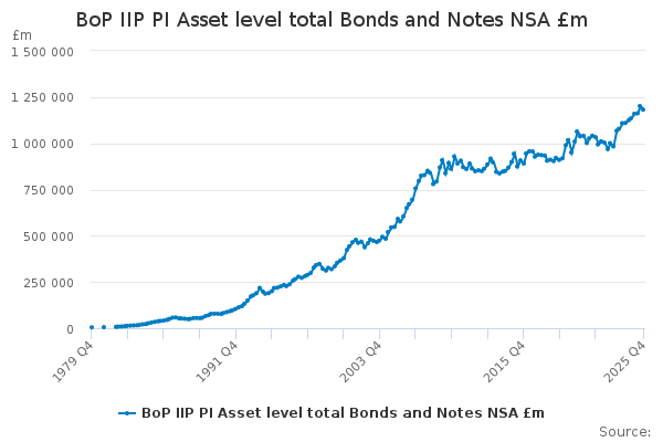 Download this time seriesBoP IIP PI Asset level total Bonds and Notes NSA £m