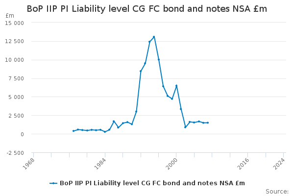 Download this time seriesBoP IIP PI Liability level CG FC bond and notes NSA £m