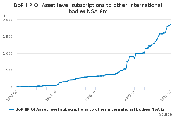 Download this time seriesBoP IIP OI Asset level subscriptions to other international bodies NSA £m