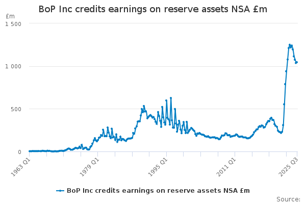 Download this time seriesBoP Inc credits earnings on reserve assets NSA £m