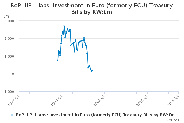 Download this time seriesBoP: IIP: Liabs: Investment in Euro (formerly ECU) Treasury Bills by RW:£m