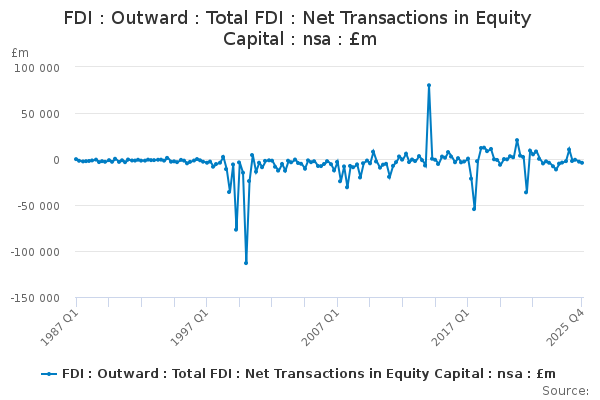 Download this time seriesFDI : Outward : Total FDI : Net Transactions in Equity Capital : nsa : £m