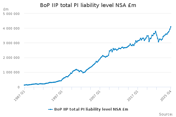 Download this time seriesBoP IIP total PI liability level NSA £m