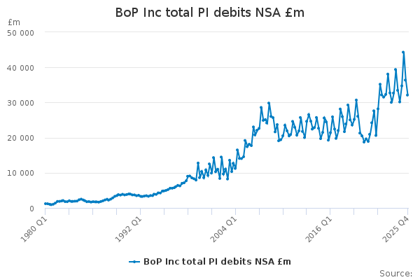 Download this time seriesBoP Inc total PI debits NSA £m