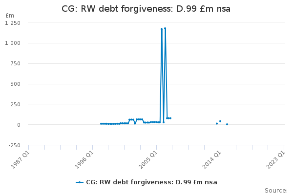 Download this time seriesCG: RW debt forgiveness: D.99 £m nsa