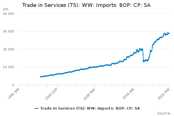 Download this time seriesTrade in Services (TS): WW: Imports: BOP: CP: SA