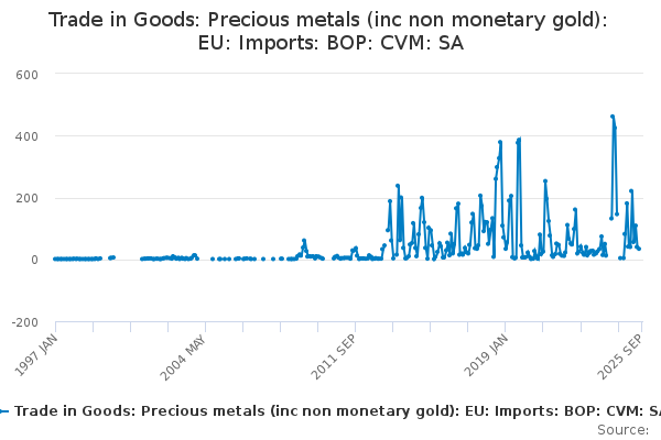Download this time seriesTrade in Goods: Precious metals (inc non monetary gold): EU: Imports: BOP: CVM: SA