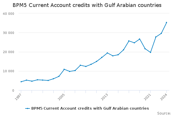 Download this time seriesBPM5 Current Account credits with Gulf Arabian countries